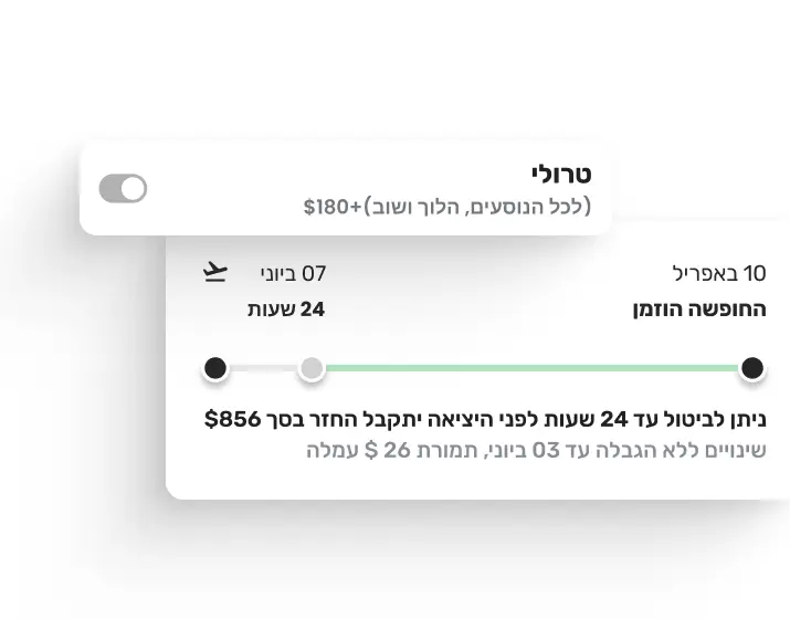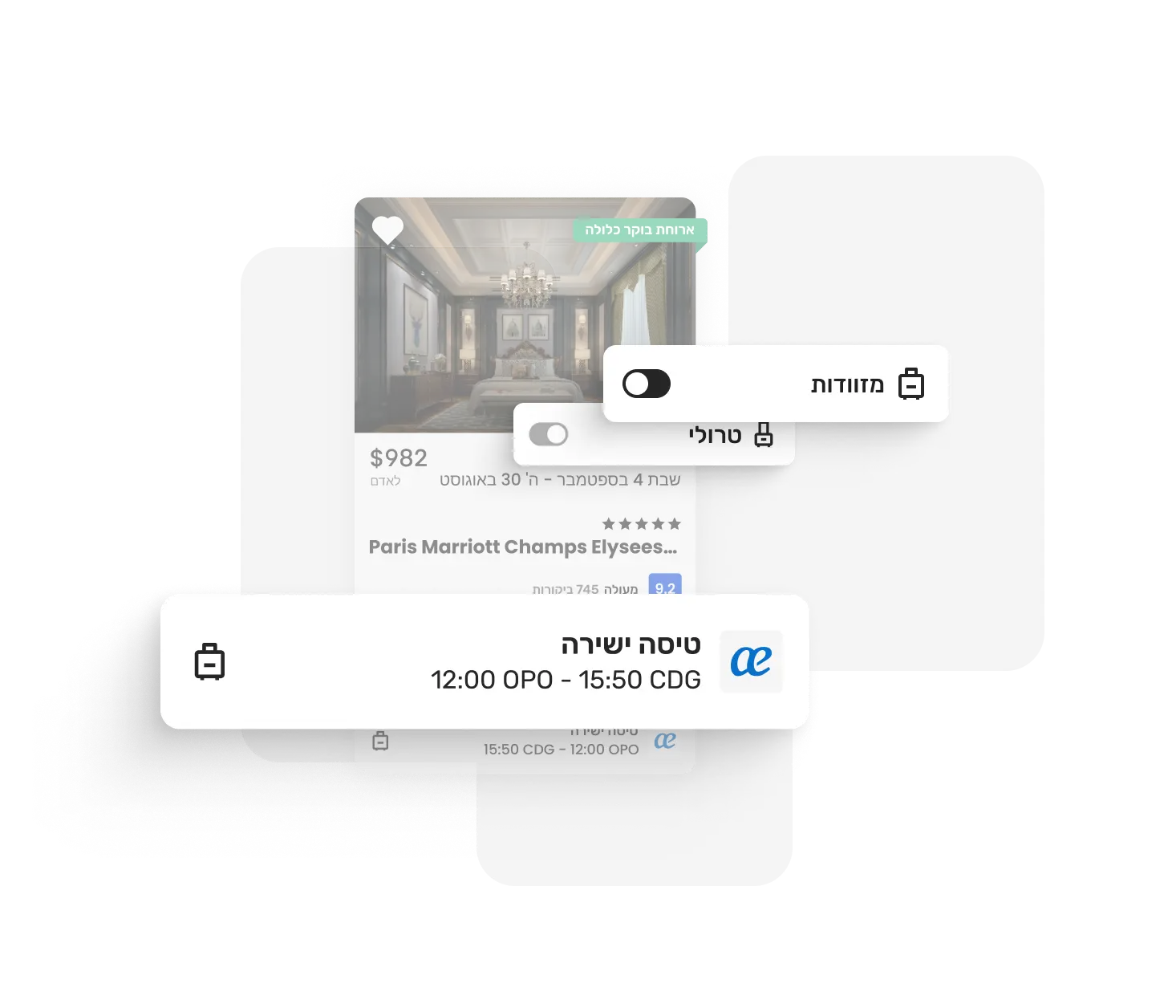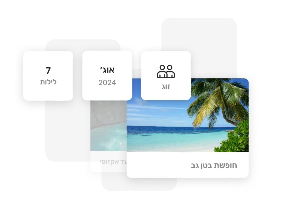 אנחנו מזמינים אתכם להחליף שעות של חיפושים באתרים שונים, להפסיק להצליב מידע על טיסות, מלונות, תאריכים ויעדים ולהתחיל לרכז את הכל בפיד אחד שמתאים לכם בדיוק. זה לוקח שניות, הכי פשוט שיש.